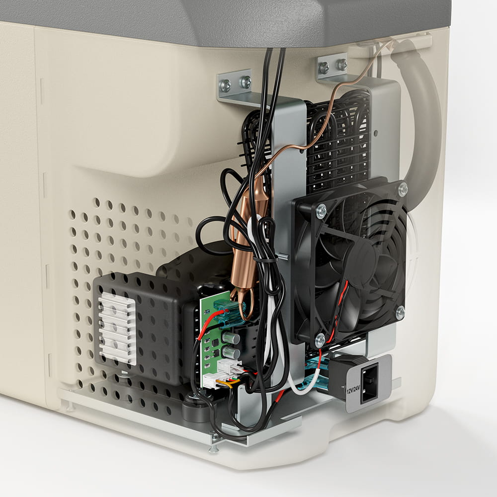 Die Kühlbox verfügt über einen mehrstufigen Schutz der Autobatterie vor Entladung, wenn diese Stromversorgungsoption genutzt wird, sowie einen Überspannungsschutz.