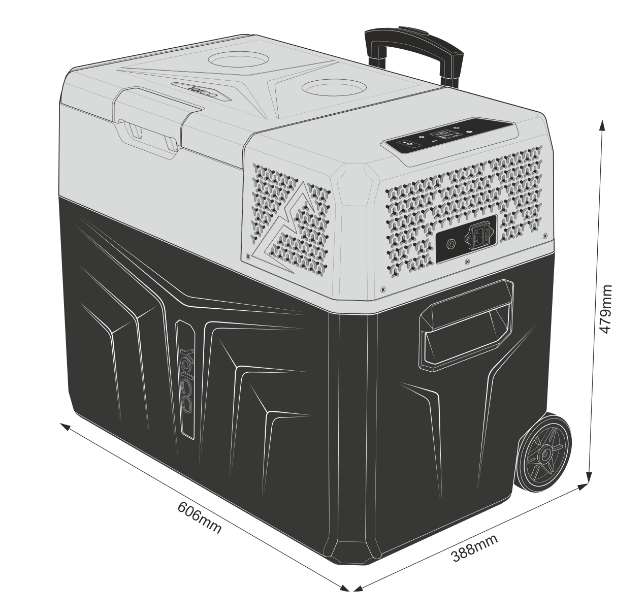 Die Kühlbox verfügt außerdem über einen mehrstufigen Schutz der Autobatterie vor Entladung, wenn diese Stromversorgungsoption genutzt wird, sowie einen Überspannungsschutz.