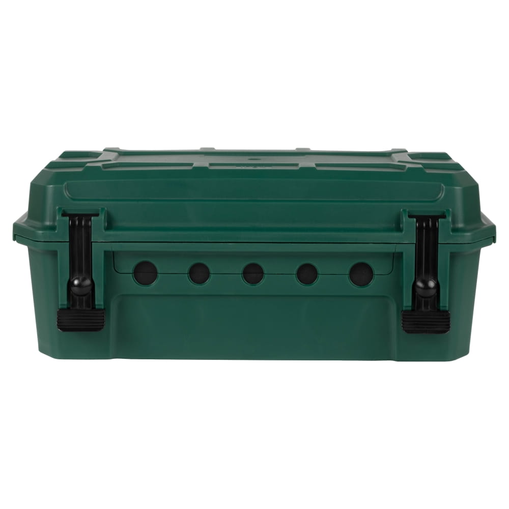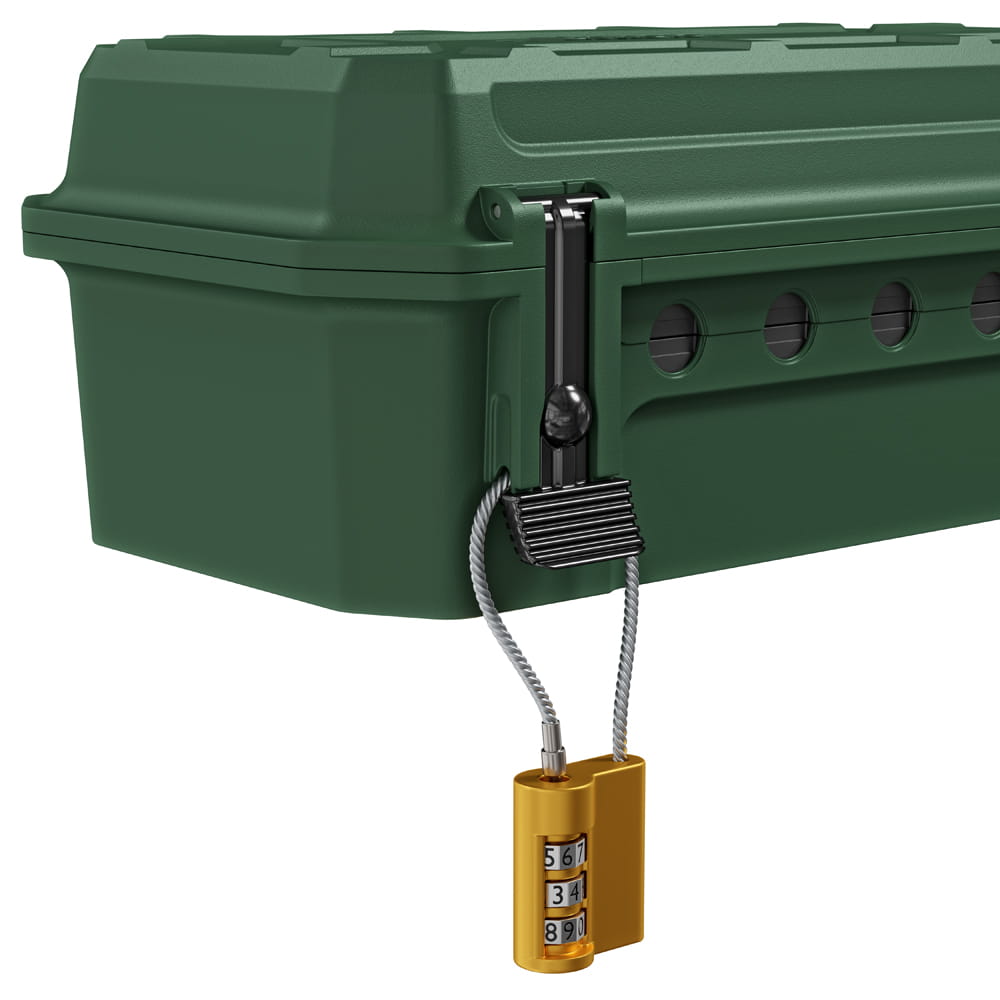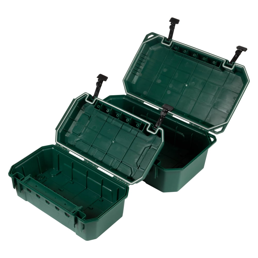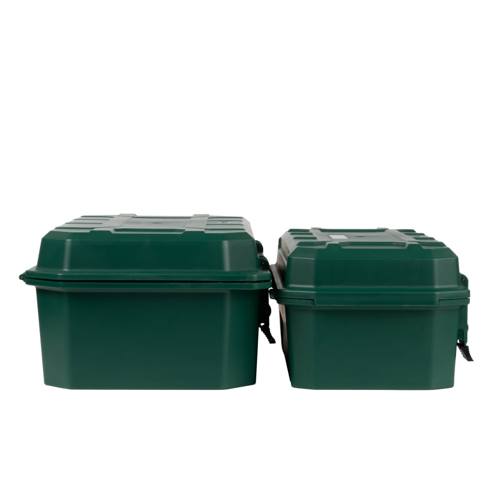 Die Schutzbox von Yolco zeichnet sich durch eine robuste Konstruktion aus hochwertigem Kunststoff aus. Sie bietet Platz für Steckdosenleisten, Kabel, Zeitschaltuhren oder Funkempfänger. Die Box verfügt über Öffnungen, durch die bis zu fünf Elektrokabel herausgeführt werden können (2x⌀ 12,4 mm; 3x⌀ 10,5 mm).