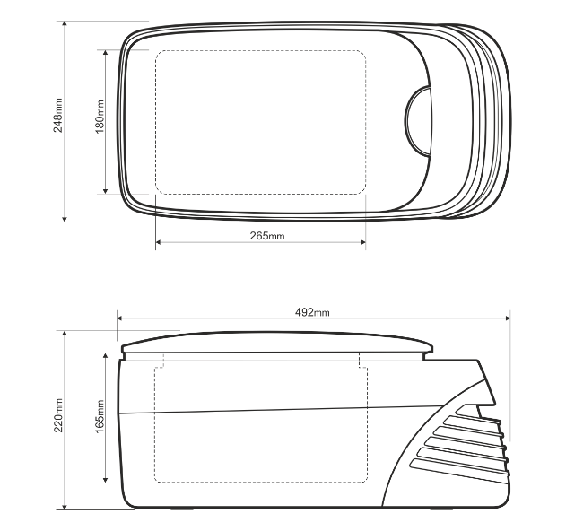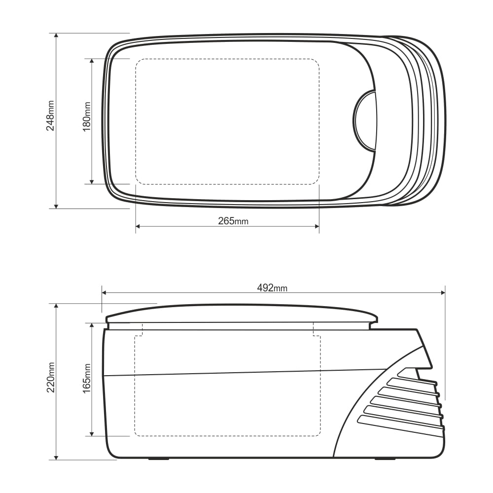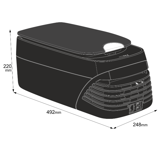 - Abmessungen (B x H x T): 492 x 220 x 248 mm (19.4 x 18.7 x 9.8 in)
