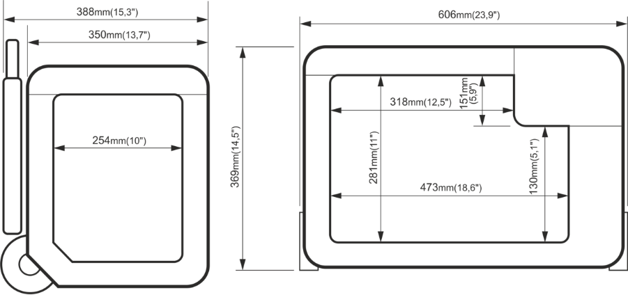 - Abmessungen (B x H x T): 606 x 369 x 388 mm (in Zoll: 23,9″ x 14,5″ x 15,3″)