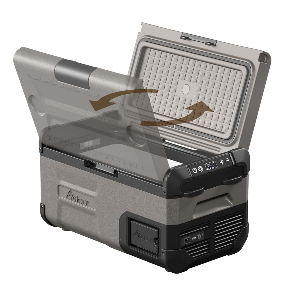 Die Kühlbox verfügt außerdem über einen mehrstufigen Schutz der Autobatterie vor Entladung, wenn diese Stromversorgungsoption genutzt wird, sowie einen Überspannungsschutz.