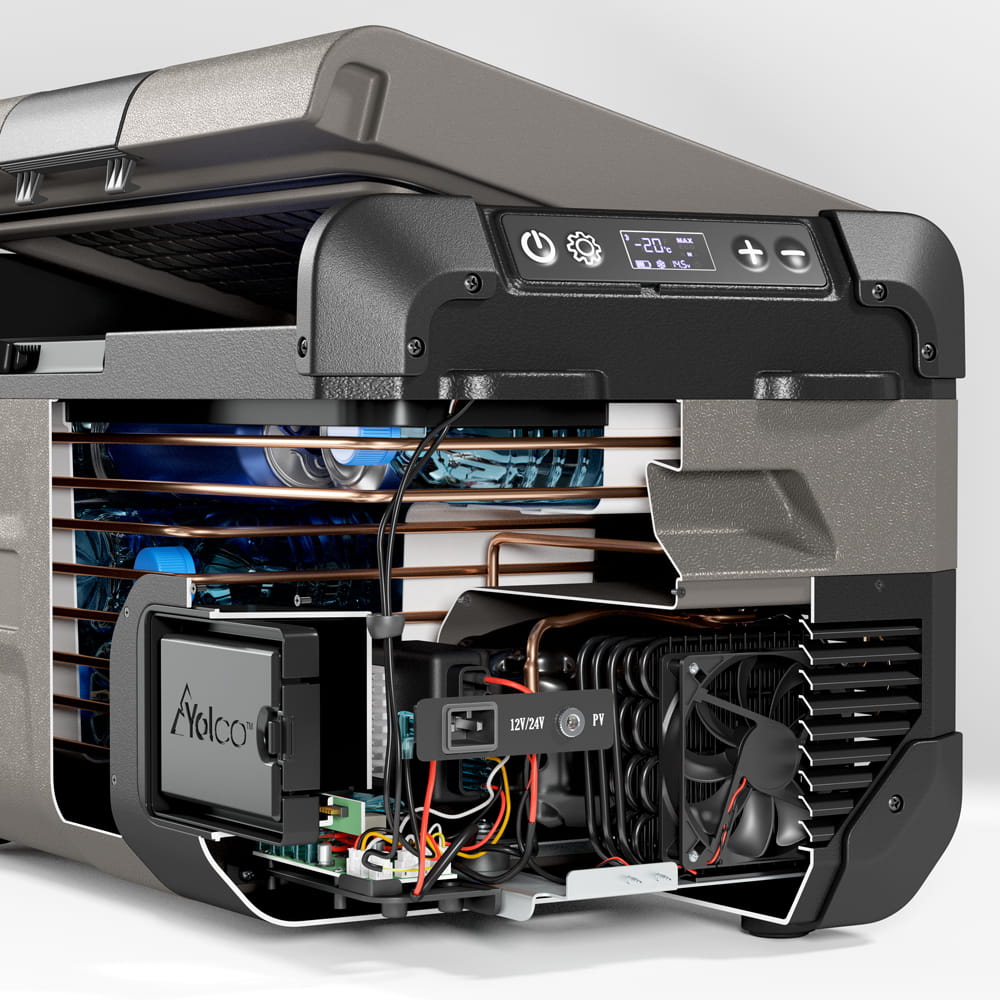 Klein und tragbar. Der leistungsstarke Kompressor und die erstklassige Isolation arbeiten Hand in Hand für blitzschnelle Ergebnisse. Alle unsere Kühlsysteme basieren auf der Kompressor-Methode, die beständigste Art, bis zu -20°C zu kühlen oder zu frieren.