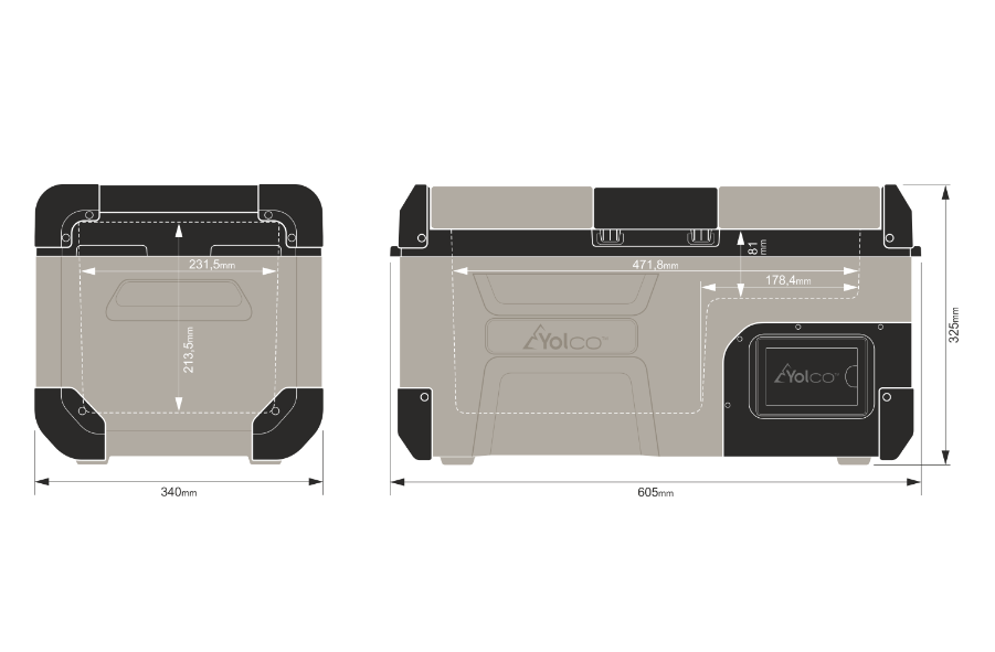 - Stromversorgung über dedizierten externen Akku Yolco CSX5 oder RSX6 (nicht im Lieferumfang enthalten)