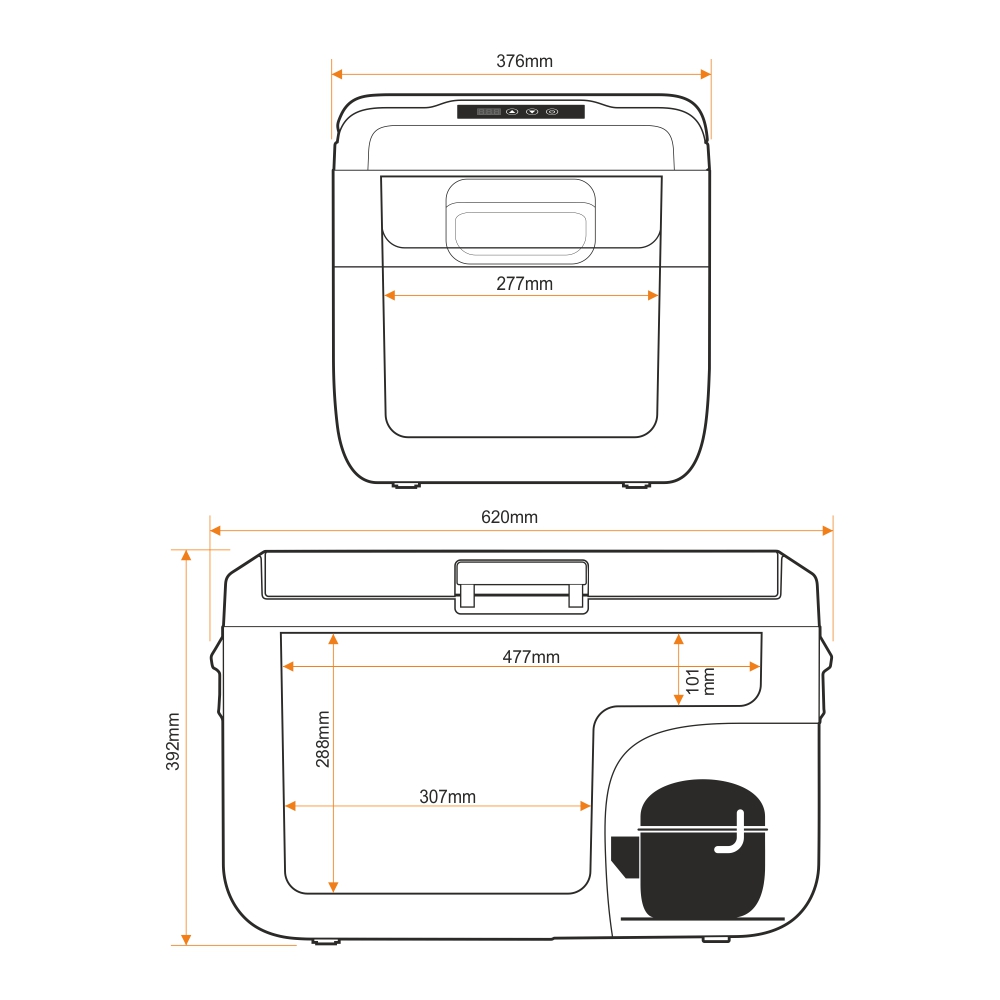 - – Flexibel umkehrbare Tür – Die Öffnungsrichtung lässt sich individuell anpassen, sodass sich die Kühlbox perfekt in jede Umgebung einfügt – egal ob im Auto, Camper oder Zelt. Maximale Freiheit bei der Platzierung garantiert.