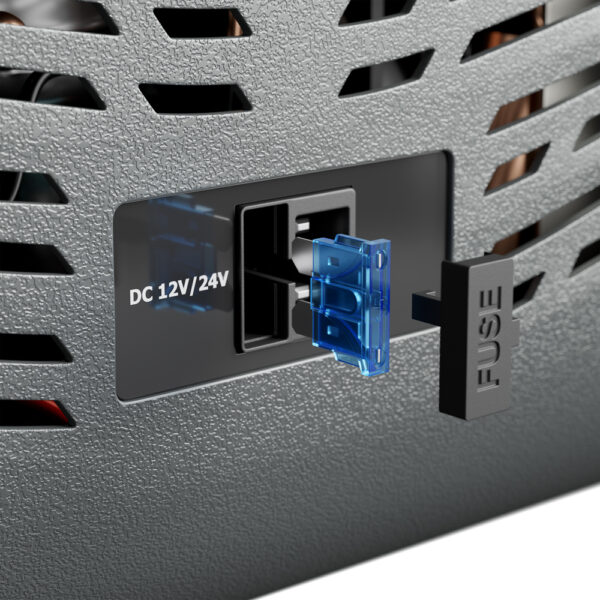 - – DC 12/24 V Anschluss – direkt im Auto oder Camper anschließen und sofort volle Kühlpower genießen.