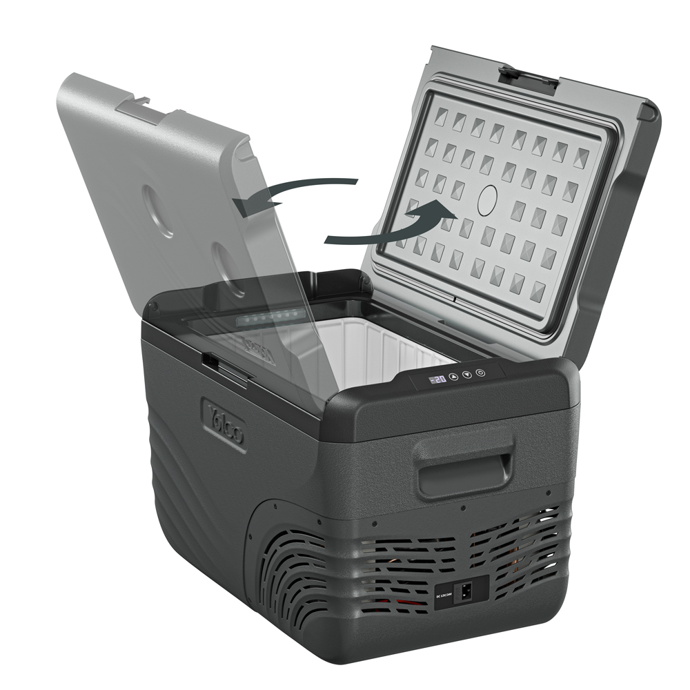 - – Türöffnung nach deinem Style – Links, rechts, wie du willst! Die umkehrbare Tür passt sich jeder Situation an, damit deine Kühlbox immer perfekt sitzt – ob im Auto, Camper oder Zelt. Maximale Freiheit, maximale Kontrolle.