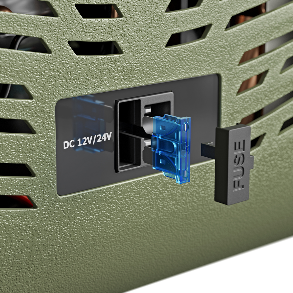 - – DC 12/24 V – schließt sich direkt ans Auto oder Camper an und liefert sofort volle Kühlpower unterwegs.