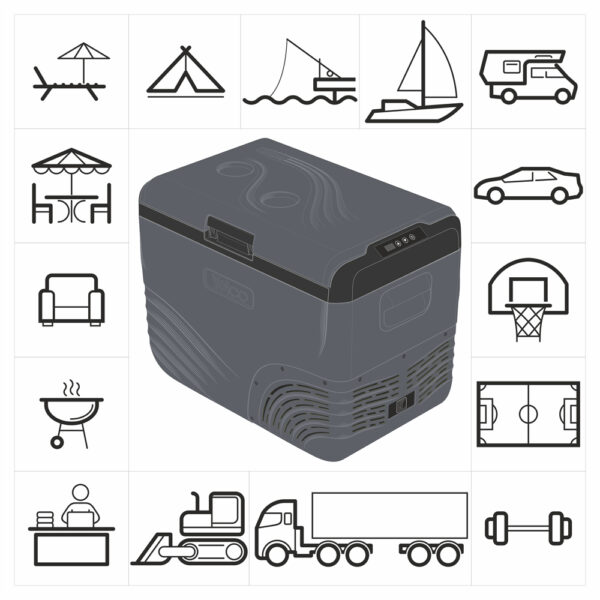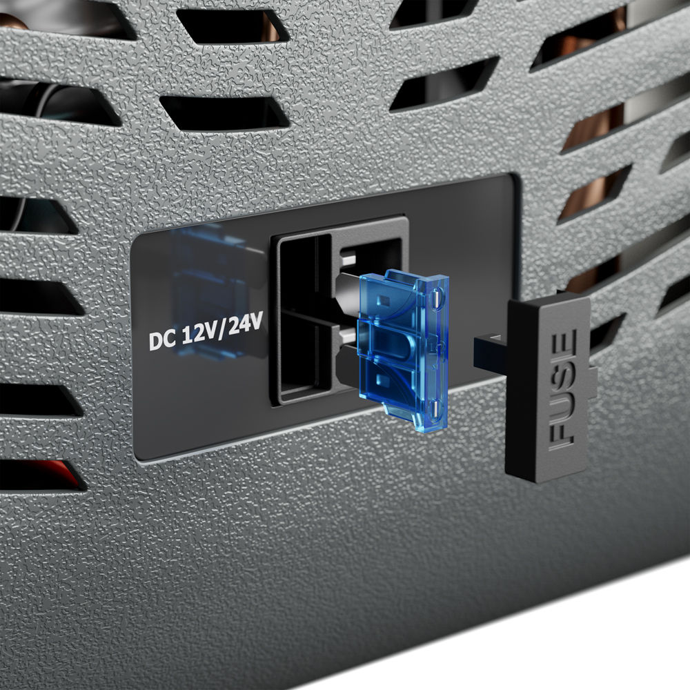 - – DC 12/24 V Anschluss – zapfe direkt die Power deines Autos oder Campers an und genieße sofort kompromisslose Kühlleistung, egal wo du gerade unterwegs bist.