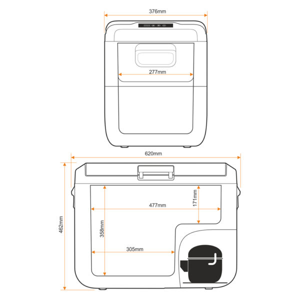 - – Umkehrbare Tür für totale Freiheit – Passe die Öffnungsrichtung exakt an deine Umgebung an. Links, rechts – ganz egal. Die NX40 Carbon fügt sich perfekt in dein Setup ein, ob im Auto, Camper oder Zelt. Maximale Flexibilität, damit du keinen Zentimeter Platz verschwendest.