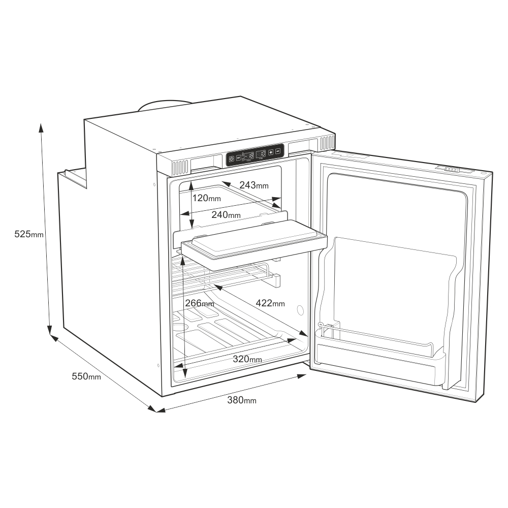 Der Einbaukühlschrank Yolco RL50M bietet maximalen Schutz für Ihr Fahrzeug und das System: