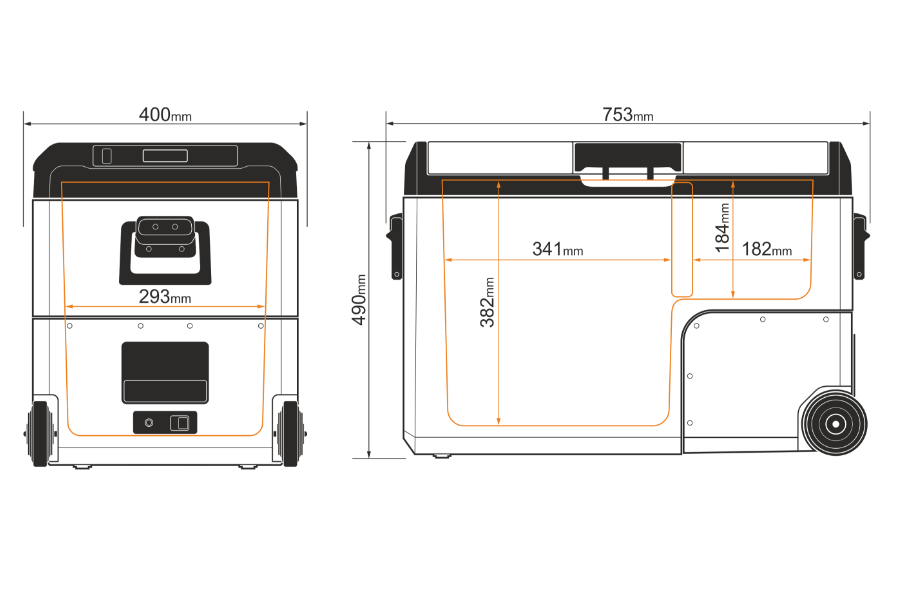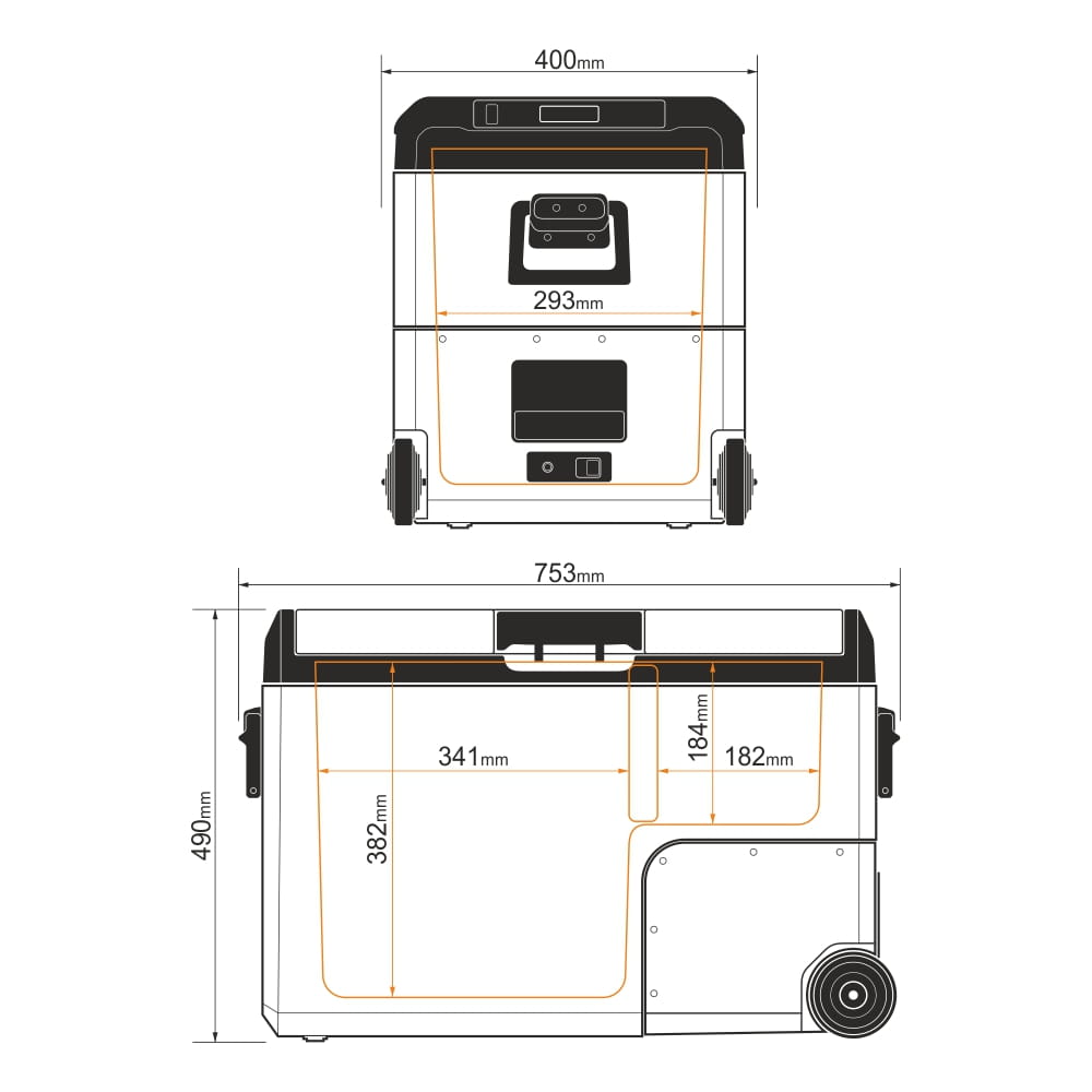 Die Kompressor-Kühlbox ist mit zwei Kühlkammern ausgestattet, die über eine getrennte Temperatursteuerung (Dual-Zone) verfügen. Dadurch lassen sich die Lagerbedingungen für unterschiedliche Produkte präzise anpassen.